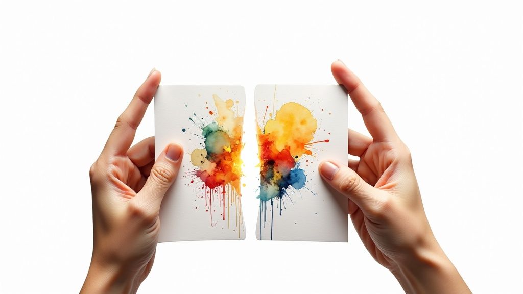 A brilliant idea for a folded business card can easily fall flat without smart design. That extra real estate is a fantastic asset, but only if you use it with a clear purpose. Designing for a fold is like choreographing a dance—every movement and reveal needs to be planned to guide your audience smoothly from one step to the next.