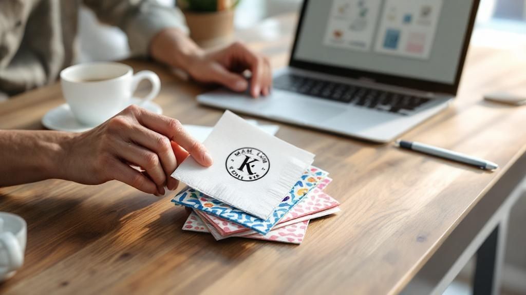 We tend to dismiss napkins as a basic necessity, but that's exactly where their power lies. Every single guest will pick one up. It's a guaranteed point of contact, giving you a chance to reinforce your brand or share a bit of your story in a way that bigger decor pieces just can't.