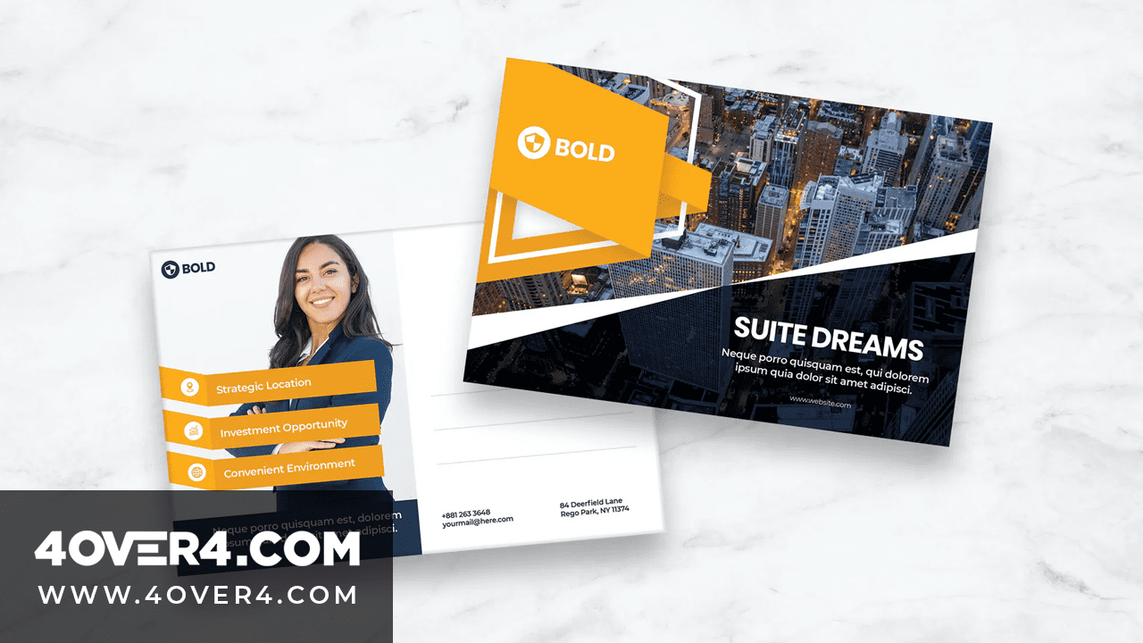 At 4OVER4.COM, we help businesses leverage the power of marketing postcards through premium printing options and customizable templates. Whether promoting a seasonal campaign or building brand recognition, our postcard printing services elevate any message. Explore our postcards printing services to find the perfect fit for your needs.