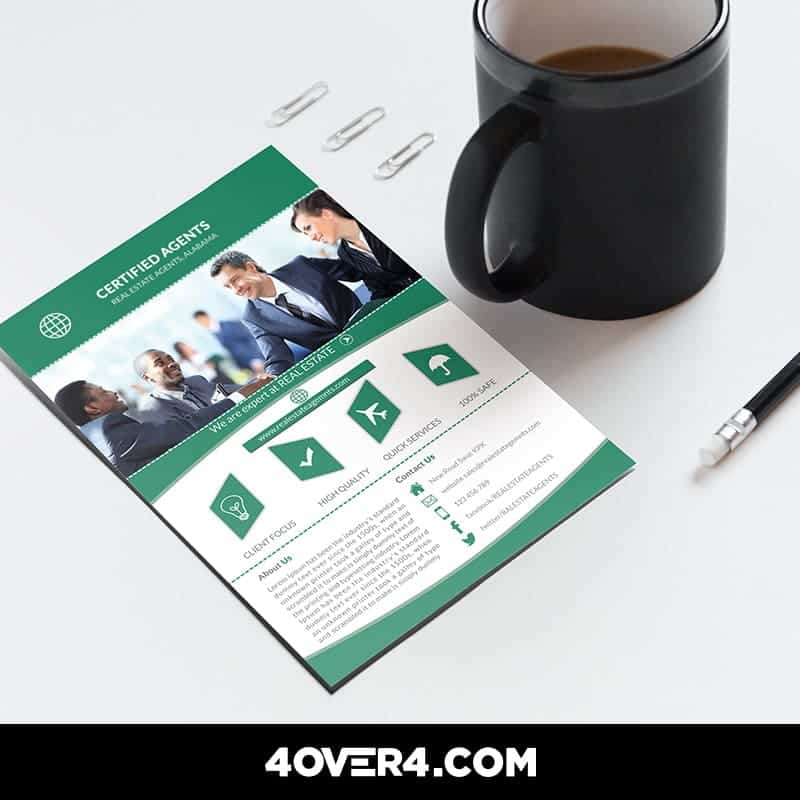 Depending on the design, you can use real estate brochures to portray noticeable marketing points for your listing.The design can help you create a feeling of uniqueness for high-end properties or affordability for listings targeted towards working-class families. Order our custom printed half fold brochures in a range of sizes. #4 Grab Some Attention With a Striking Real Estate Flyer Creating a good first impression, as a rule of thumb in life, is an absolute must. Make sure to come up with and eye-catching design and compelling copy that will stand out on the spot. If you fail to do so, you are running the risk of having your flyer end up in a trash can along with your marketing dollars. If you want to make the best impact on buyers, use the right combination of graphics and content on your flyer to generate leads and engage your audience. If you want to get your target audience fully engaged, think long and hard about your niche and custom-build your flyer design to match the needs and wants of that particular group.