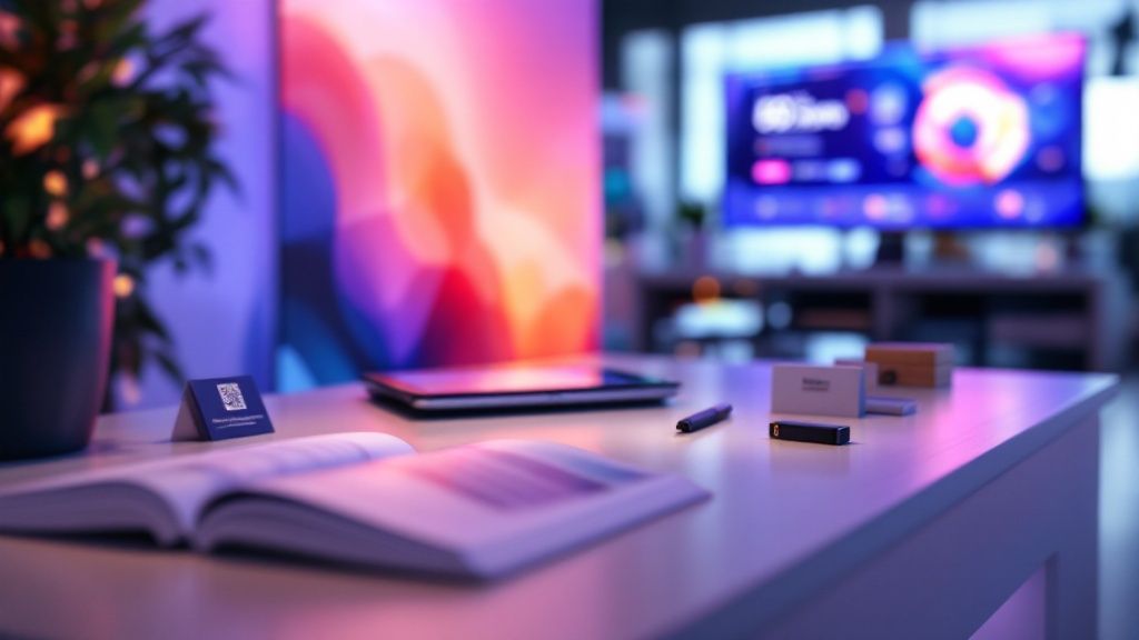 In the controlled chaos of an expo hall, your physical marketing materials for trade shows are your front line. But the real magic happens when you weave the physical and digital worlds together. A modern booth doesn't just sit there handing out brochures; it creates an interactive, seamless experience that grabs attendees and makes lead capture a breeze.